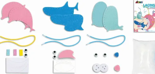 Mit diesem Nähset können kleine Nähkünstler & -künstlerinnen verschiedene Filztiere zum Thema Meer basteln. Das Set enthält alle nötigen Materialien, um gleich loszulegen: vorgeschnittene Filzteile, Füllung, Garn und bebilderte Anleitung.