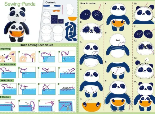 Dieses Nähset beinhaltet alles, was es braucht, um dein eigenes Panda-Plüschtier zu nähen. Das Set fördert die Feinmotorik der Kinder. Maße Plüschtier 23x23cm