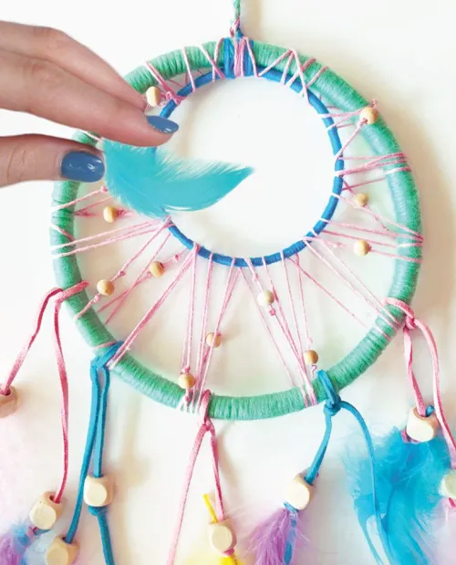 Kreatives All-in-One Bastelset für Kinder, um einen hübschen Traumfänger herzustellen. Ideales Geschenk, das jedes Kinderzimmer verschönert. Inklusive Anleitung mit Abbildungen. In attraktiver Aufbewahrungsschachtel. Inhalt: 36 Holzperlen, 1 großer und 1 kleiner Ring, 1 farbiger Wollfaden, 2 farbige Baumwollfäden, Kunstleder in 2 Farben, 16 farbige Federn. Inhalt: 36 Holzperlen, 1 großer und 1 kleiner Ring, 1 farbiger Wollfaden, 2 farbige Baumwollfäden, Kunstleder in 2 Farben, 16 farbige Federn.
