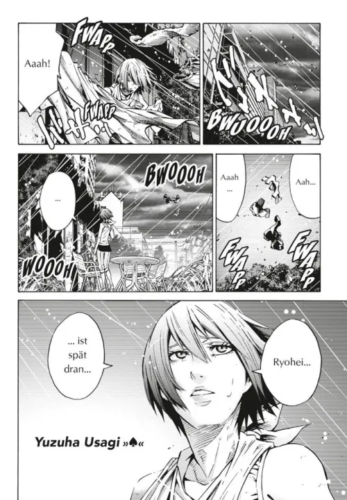 Ryohei hat sein Leben satt. Die Schule nervt, sein Liebesleben ist ein Witz und seine Zukunft fühlt sich an wie der drohende Untergang. Woanders wäre sicher alles besser. Als jedoch ein seltsames Feuerwerk ihn und seine Freunde in eine Parallelwelt transportiert, glaubt Ryohei, dass nun all seine Wünsche in Erfüllung gehen. Aber diese neue Welt ist kein Paradies, sondern ein grausames Spiel auf Leben und Tod – Und die einzige Möglichkeit zu überleben, ist, daran teilzunehmen.