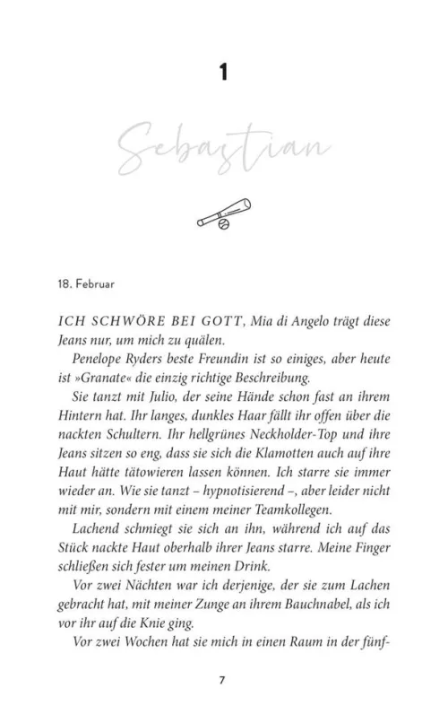 Diese Saison ist die entscheidende Gelegenheit, mich bei der Nachwuchsauswahl der großen Baseball-Teams zu beweisen. Das Letzte, was ich brauche, ist eine Ablenkung – erst recht nicht eine so verführerische wie Mia di Angelo. Die Astrophysikstudentin ist klug und umwerfend schön – natürlich musste ich mich verlieben. Doch als es zwischen uns ernster wurde, hat sie mich abserviert. Jap, autsch. Jetzt braucht sie allerdings eine Bleibe für den Sommer. Vergangenheit hin oder her . . . bevor sie gar kein Alternative findet, sollte ich ihr wenigstens einmal anbieten bei mir einzuziehen.