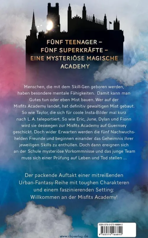 Menschen, die mit dem Skill-Gen geboren werden, haben besondere mentale Fähigkeiten. Damit kann man Gutes tun oder eben Mist bauen. Wer auf der Misfits Academy landet, hat definitiv gewaltigen Mist gebaut. So wie Taylor, die sich für coole Insta-Bilder mal kurz nach Dubai teleportiert, oder Eric, der Gefühle steuern kann und sich als Happy-Feelings-Dealer auf dem Schulhof eine goldene Nase verdient hat. Zusammen mit June, Dylan und Fionn sind sie deswegen zur Misfits Academy auf Guernsey geschickt worden. Doch wider Erwarten werden die fünf Nachwuchshelden Freunde und beginnen einander das Geheimnis ihrer jeweiligen Skills zu enthüllen. Doch dann ereignen sich an der Schule mysteriöse Vorkommnisse und das junge Team muss sich einer Prüfung auf Leben und Tod stellen . . .