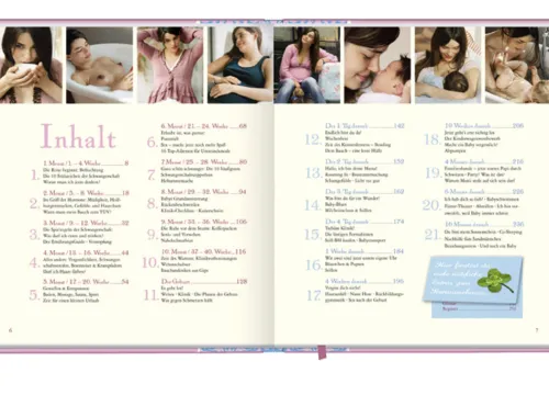 Das Mami-Buch ist mehr als ein Ratgeber: Es begleitet die Frau während der gesamten Schwangerschaft und der ersten zehn Monate nach der Geburt.