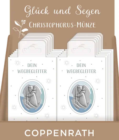 Die Christophorus-Münze ist der perfekte Glücksbringer für alle Reisenden. Diese kleine Münze passt mühelos ins Portemonnaie oder in die Hosentasche und begleitet Sie stets mit Glück und Segen.