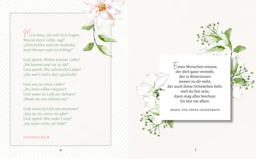 Ein wundervolles Geschenk für alle, denen wir zur Hochzeit das Beste wünschen. Eine Auswahl der schönsten Gedichte und Gedanken über das Glück zu zweit lädt dazu ein, den schönsten Tag im Leben und die Liebe in all ihren Facetten zu feiern. Berührend und inspirierend begleitet dieses liebevoll gestaltete Buch das Brautpaar auf seiner Reise in die gemeinsame Zukunft.