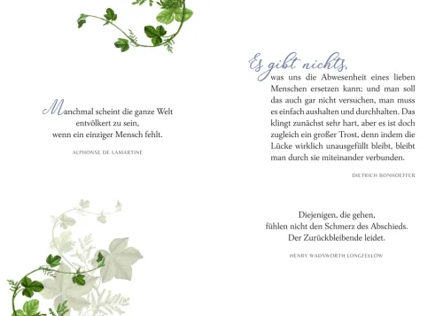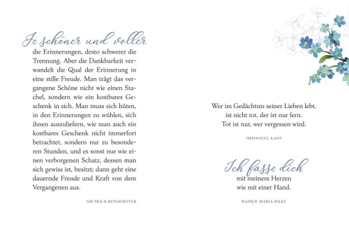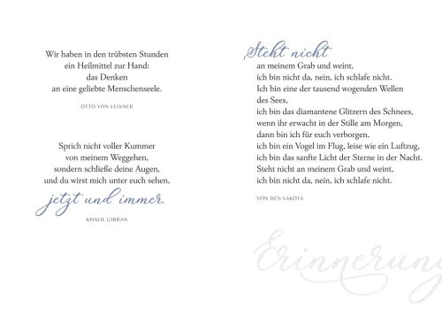 Wenn uns die Worte fehlen, kann dieses Buch Trost spenden. Es vereint einfühlsame Gedichte und Gedanken, die behutsam begleiten und Hoffnung schenken. Hochwertig ausgestattet mit Strukturpapier, Goldfolie und geprägtem Etikett – ein besonderes Geschenk im Trauerfall.