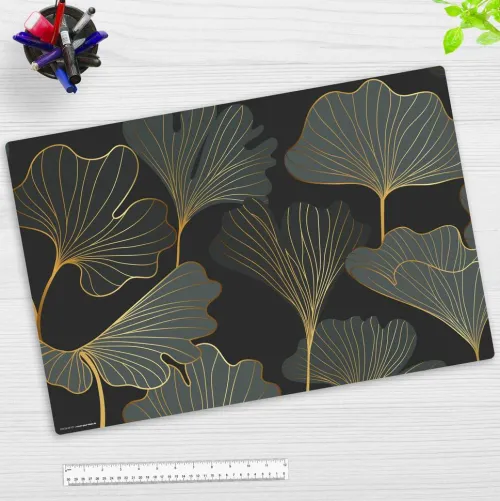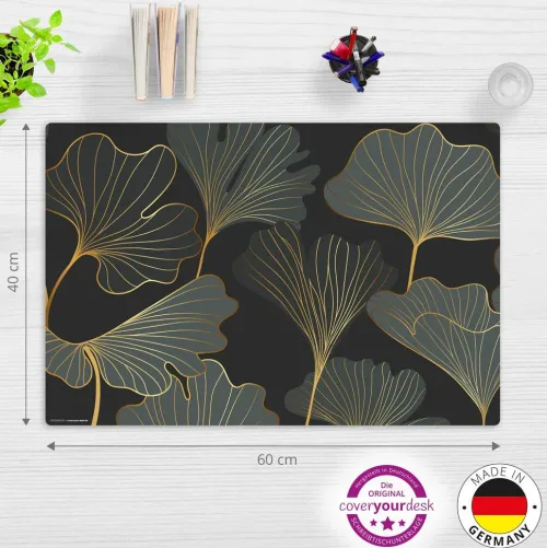 Cover-your-desk Schreibtischunterlagen-Schreibtischunterlage für Kinder Blattwerk Ginkgo in gold und grün, aus hochwertigem Vinyl , 60 x 40 cm