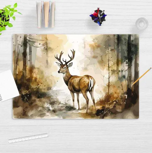 Cover-your-desk Schreibtischunterlagen-Schreibtischunterlage für Kinder Hirsch im Wald Aquarell, aus hochwertigem Vinyl, 60 x 40 cm