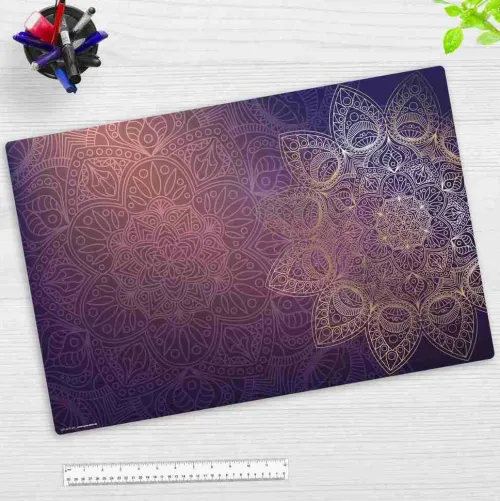 Cover-your-desk Schreibtischunterlagen-Schreibtischunterlage für Kinder und Erwachsene lila-goldenes Mandala, aus hochwertigem Vinyl, 60 x 40 cm