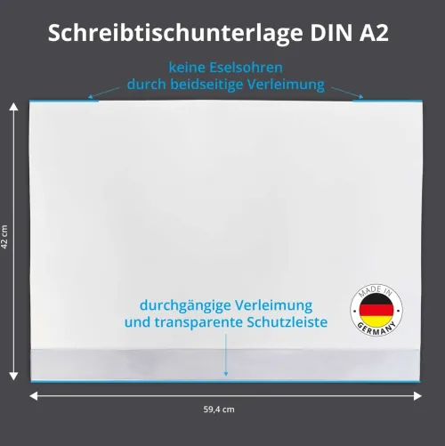 Unsere Unterlagen bieten ausreichend Platz für Notizen, Ideen und sonstige Termine. Wenn aus einem flüchtigen Gedanken eine innovative Idee wird – mit unseren Unterlagen hast Du definitiv genug Platz diese Idee auszuarbeiten und weiterzudenken! Die DIN A2 Unterlagen bestehen aus 25 Blatt zum abreißen und können nicht nur als Notiz-, sondern genauso als Malblock verwendet werden. Die ausgezeichnete Papierqualität bietet optimalen Schreib-, Zeichen-, oder Malkomfort vom ersten bis zum letzten Blatt.