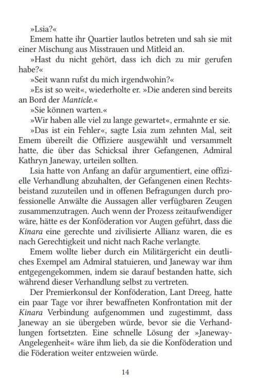 Admiral Kathryn Janeway blickt einem Tribunal entgegen, das dazu entschlossen ist, sie für Verbrechen hinzurichten, denen sie sich auf dem Jungfernflug der Voyager durch den Delta-Quadranten angeblich schuldig gemacht hat. Captain Chakotay ist davon überzeugt, dass mehr hinter der Kinara – einer Allianz verschiedener Spezies, die sich gegen die Full-Circle-Flotte verbündet hat – steckt, als es den Anschein hat. Die Konföderation der Welten des Ersten Quadranten – ein Bündnis, dem er nicht vertrauen kann – stellt seine einzige Hoffnung dar, die wahren Ziele der Kinara aufzudecken und Admiral Janeway zu retten. In der Zwischenzeit bemühen sich Seven und Tom Paris verzweifelt, die Machenschaften eines Sternenflottenoffiziers aufzudecken. Dieser versucht, die Föderation vor den legendären Caeliar zu schützen und sie sehen sich dazu gezwungen, das Vertrauen ihrer Vorgesetzten zu verraten.