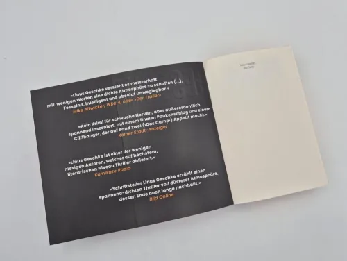 »Linus Geschke ist einer der wenigen, hiesigen Autoren, welcher auf höchstem, literarischen Niveau Thriller abliefert. « Kamikaze Radio