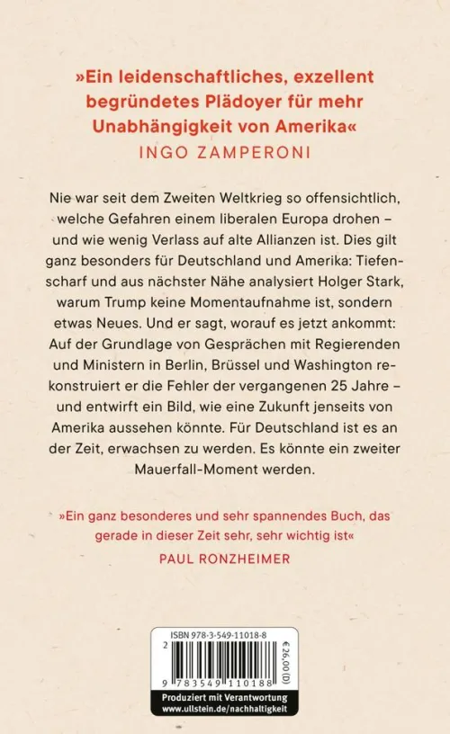 Holger Stark analysiert tiefenscharf und aus nächster Nähe, warum Trumps USA keine Momentaufnahme ist, sondern der Beginn von etwas Neuem. Der preisgekrönte Journalist und Bestsellerautor sagt, worauf wir uns einstellen müssen: Auf der Grundlage von Gesprächen mit Regierenden und Ministern in Berlin, Brüssel und Washington rekonstruiert er die Fehler der vergangenen 25 Jahre – und entwirft ein Bild, wie eine Zukunft jenseits von Amerika aussehen könnte. Für Deutschland ist es an der Zeit, erwachsen zu werden. Es könnte ein zweiter Mauerfall-Moment werden.