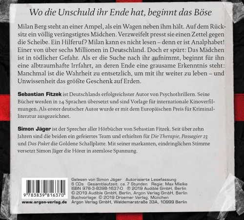 Milan Berg steht an einer Ampel, als ein Wagen neben ihm hält. Auf dem Rücksitz ein völlig verängstigtes Mädchen. Verzweifelt presst sie einen Zettel gegen die Scheibe. Ein Hilferuf? Milan kann es nicht lesen – denn er ist Analphabet! Einer von über zwei Millionen in Deutschland. Doch er spürt: Das Mädchen ist in tödlicher Gefahr. Als er die Suche nach ihr aufnimmt, beginnt für ihn eine albtraumhafte Irrfahrt, an deren Ende eine grausame Erkenntnis steht: Manchmal ist die Wahrheit zu entsetzlich, um mit ihr weiterzuleben – und Unwissenheit das größte Geschenk auf Erden.