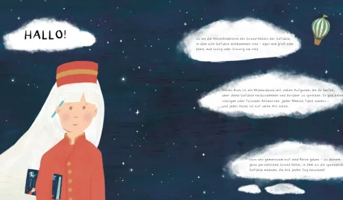 „Also machen wir uns auf die Reise in dein persönliches Grand Hotel – und entdecken all die wunderbaren Gefühle, die dich jeden Tag besuchen!“