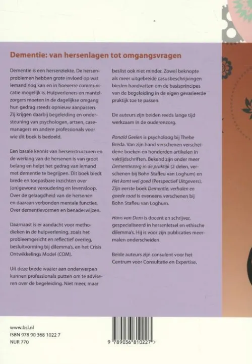 Een basale kennis van hersenstructuren en de werking van de hersenen is van groot belang en helpt het gedrag van iemand met dementie te begrijpen. Brede en toepasbare inzichten over (on)gewone veroudering, de gelaagdheid van de hersenen en daaraan verbonden mentale functies, de levensloop, dementievormen en benaderwijzen van mensen met dementie komen in dit boek aan bod.