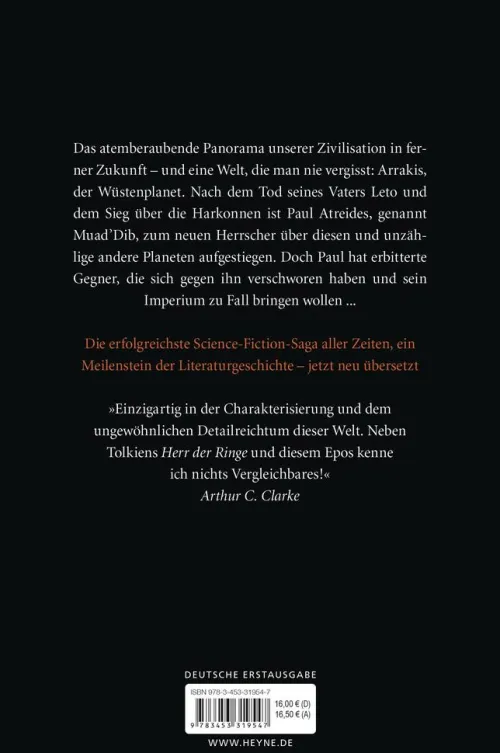 Die ferne Zukunft: Der Kampf um Arrakis, den Wüstenplaneten, ist beendet, und Paul Atreides, genannt Muad’dib, ist von den Fremen zu ihrem Propheten ernannt worden. Sie folgen ihm bedingungslos in einen Djihad, der wie ein Sturmwind durch die Galaxis fegt. Pauls neues Imperium und seine Machtfülle ruft Neider auf den Plan, die seine Herrschaft brechen wollen. Und so mischen sich unter die Pilger, die nach Arrakis kommen, um den Erlöser zu sehen, Attentäter, menschliche Zeitbomben . . .