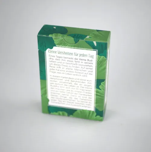 Eines Tages bemerkt der kleine Buddha, dass ihm etwas fehlt in seinem Leben und er beschließt loszuziehen, um dieses Etwas zu finden. Auf seiner Reise trifft er allerlei Menschen und jeder hat eine andere Antwort auf die Frage, was im Leben wirklich zählt. In diesem Kartendeck sind diese wunderschönen und berührenden Antworten versammelt, die dir zeigen, wie wertvoll das Leben ist. Der kleine Buddha lehrt dich mit 55 inspirierenden Impulsen, wie du inneren Frieden und ein tiefes Gefühl der Dankbarkeit erreichen kannst. Denn es sind die kleinen Dinge, die das Geheimnis des Glücks ausmachen. So kannst du jeden Tag ein kleines bisschen mehr Zufriedenheit und Zuversicht erfahren.