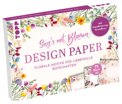 Du liebst es, andere mit einem Blumenstrauß zu überraschen? Wie wäre es mit einer handgeschriebenen Karte mit Blumenmotiven! Sag’s mit Blumen! Der neue hochwertige Papierblock mit wunderschönen Blumenmotiven für jedes Fest ist da. Eine zauberhafte Ergänzung im A5-Format für jede Handlettering-Grundausstattung. Kreativbegeisterte dürfen sich über 75 gestaltete Motivpapiere zum Belettern freuen. Der Handlettering-Grundkurs, tolle Übungsalphabeten und Lettering-Inspirationen sorgen für den ultimativen Handlettering-Spaß!