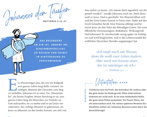 Wie würden die Männer und Frauen aus der Bibel heute leben und handeln? Wie würden wir sie mit all ihren Schwächen und Stärken bewerten? Vier Sterne für Johannes, den Täufer, als gute Seele im Hintergrund. Fünf Sterne für Abraham als Vorbild des Glaubens. Wer sich den Helden und Heldinnen der Bibel mit einem Augenzwinkern nähert, der entdeckt nicht nur unerwartete Parallelen zu unserem Leben heute und zu unseren Mitmenschen. Er erkennt auch, dass Perfektion nicht nötig ist, um mit Gott Außergewöhnliches zu vollbringen!