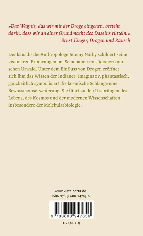 Äußerst skeptisch reagiert der Anthropologe Jeremy Narby, als er von der bewußtseinserweiternden Wirkung halluzinogener Drogen hört, von denen »Ayahuasca« mittlerweile als Designerdroge gehandelt wird. Diese Droge versetzt in Trance, beeinflußt und verändert Wahrnehmung und Erkennen. Narby nimmt an den Tranceritualen teil; es eröffnet sich ihm eine völlig unbekannte, bilderreiche Wissenskultur. Von Schamanen gelehrt ist dieses mündliche Wissen noch nie schriftlich fixiert worden. Jeremy Narby unternimmt den ersten Schritt, das einzigartige Wissen über Drogen, Gifte und Heilpflanzen, für das sich besonders westliche Pharmakonzerne interessieren, zu erschließen.