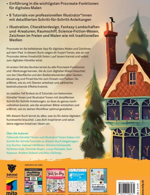 Im zweiten Teil findest du 8 Tutorials von bekannten Künstler*innen und Illustrator*innen mit detaillierten Schritt-für-Schritt-Anleitungen, so dass du genau nachvollziehen kannst, wie die einzelnen Bilder entstehen und erfährst, wie du deinen Workflow optimal gestaltest.