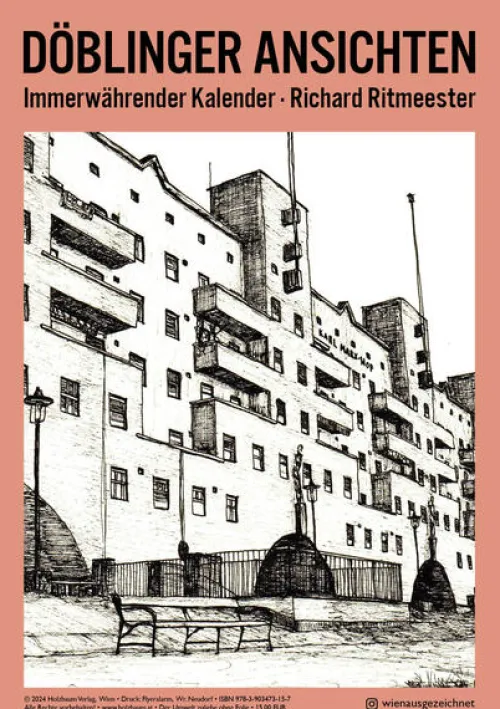 In diesem immerwährenden Kalender werden die Monate von bezaubernden Schwarz-Weiß Zeichnungen des Künstlers Richard Ritmeester begleitet. Die Motive führen quer durch den 19. Bezirk und lassen bekannte Orte wie den Karl-Marx-Hof, den Wertheimsteinpark oder die Zacherlfabrik in neuem Licht erscheinen.