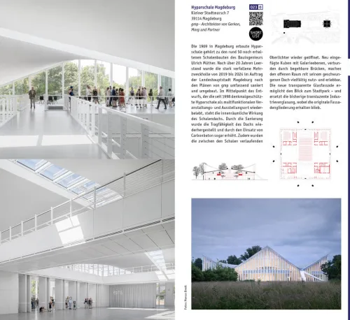 Mit dieser Ausgabe erscheint der „Architekturführer Deutschland“ zum nunmehr zehnten Mal. In bewährter Weise stellt er das jüngste Baugeschehen anhand von mehr als 100 vorbildlichen, originellen oder experimentellen, auf jeden Fall aber bemerkenswerten Gebäuden vor von Meldorf in Schleswig-Holstein bis Wangen im Allgäu, von Düsseldorf bis Küstrin-Kietz. Die Auswahl, über die eine Experten-Jury entschieden hat, entspricht der Longlist für den DAM Preis für Architektur in Deutschland 2026. Thematische Schwerpunkte sind unter anderem Verkehrsinfrastruktur-Projekte etwa die Schiersteiner Rheinbrücke zwischen Mainz und Wiesbaden , wiederbelebte Ortszentren im ländlichen Raum mit Vereinsräumen, Cafés, Museen und »Green Buildings« wie der umgebaute riesige Flakbunker in St. Pauli, der eine intensive Dachbepflanzung erhalten hat.