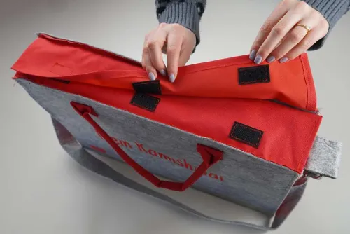 - Schick und leicht: Filztasche mit verstärktem Boden und rotem Seitenteil