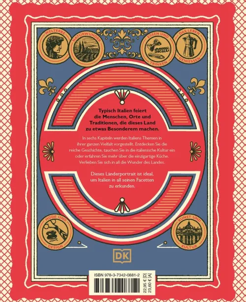 Glitzernde Seen, bunte Märkte, weltberühmte Opern und elegante Mode – Italien hat so viel mehr zu bieten als Pizza, Eis, Sonne und Meer. Dieses außergewöhnliche Reisebuch bringt Ihnen Italien in all seiner Vielfalt und Einzigartigkeit näher. Erkunden Sie die bezaubernden Landschaften, lebendigen Piazzas und ikonischen italienischen Autos Seite für Seite mit atmosphärischen Fotos: „Typisch Italien“ stellt Ihnen alle Highlights und Facetten des Landes vor und lässt Sie tief in die Kultur und das Lebensgefühl Italiens eintauchen.