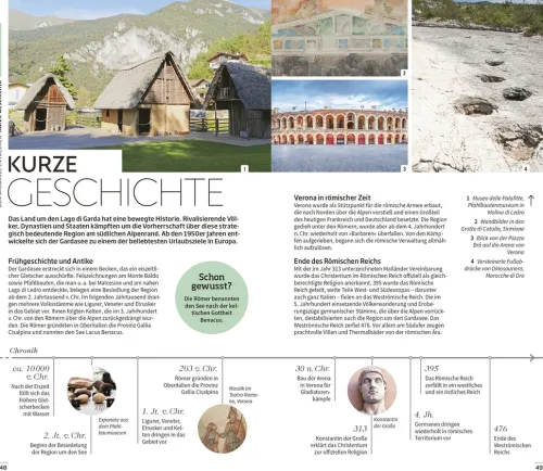 Zwischen Sandstränden und schroffen Bergwelten wandern, die mächtigen Burgen am Seeufer bestaunen oder eine Oper in der Arena von Verona besuchen: Lassen Sie sich vom Vis-à-Vis Reiseführer Gardasee zu den wichtigsten Sehenswürdigkeiten und beeindruckendsten Orten der Region führen. Mit fundiertem Expertenwissen, inspirierenden Fotos und detaillierten Karten stellt Ihnen der übersichtliche Reiseführer die schönsten Gegenden, Städte und Ausflugsziele rund um den Gardasee mit allen Attraktionen vor – vom nördlichen Gardasee mit seinen steil aufragenden Berghängen und Wander- und Outdoor-Paradiesen bis zu den sanften Hügeln mit Weinbergen und Olivenhainen im lieblichen Süden. Ob für ein Wochenende, eine Woche oder länger – hier finden Sie passende Reiserouten und Empfehlungen für Aktivitäten, Restaurants und Hotels, um das Beste aus Ihrem Gardasee-Urlaub herauszuholen!