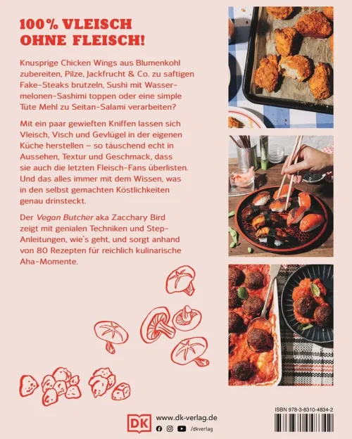 100 % Fleischersatz – 100% Genuss. „Vegan Butcher“ Zacchary Bird zeigt in diesem Kochbuch, wie man im Handumdrehen Tofu, Seitan oder Jackfruit in Geflügelfleisch, Wurst oder Steaks verwandelt. Und das mit einer authentischen Textur und täuschend echtem Geschmack! Das Buch enthält einfache und geniale Techniken zur Herstellung von Fleischalternativen. 80 vegane Rezepte wie Chicken Wings aus Blumenkohl oder Carbonara mit Auberginen-Bacon laden zur Verarbeitung der selbstgemachten Veggie-Fleischwaren ein.