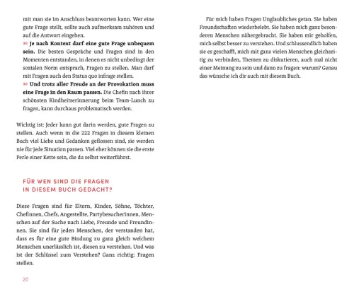- Erfüllt die Sehnsucht nach echten Gesprächen – mit Fragen zu tiefen Sehnsüchten, langgehegten Geheimnissen, wertvollen Erinnerungen und lebensverändernden Wünschen