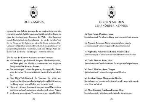 Für alle, die davon träumen, selbst Schülerin an der Katmere Academy zu sein! ‚Inside Katmere Academy‘ wird Fans begeistern, denn dieses Buch eröffnet einen exklusiven Einblick in die weltweite Bestseller-Sensation. Mit spannendem Bonus-Content, ausführlichen Steckbriefen, Fragebögen, Hintergrundinformationen und nie zuvor veröffentlichten Novellas.