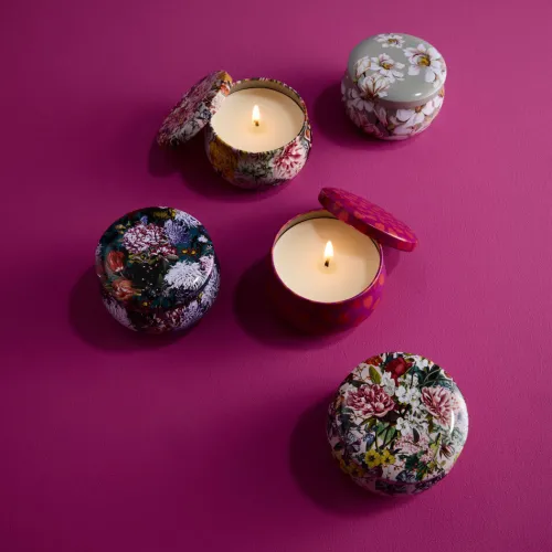 Kerze in Metalldose mit Deckel, 100% Sojawachs, Duft: Rose, Brenndauer ca. 25 Stunden Material: Sojawachs, Metall.