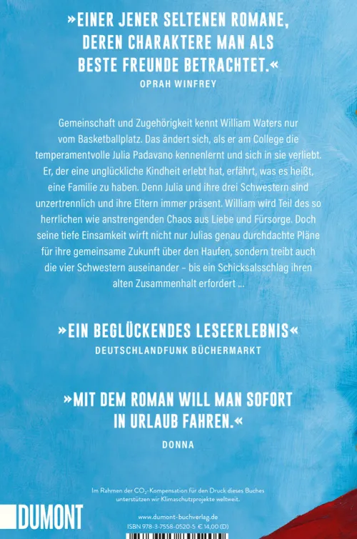 Gemeinschaft und Zugehörigkeit kennt William Waters nur vom Basketballplatz. Das ändert sich, als er am College die temperamentvolle Julia Padavano kennenlernt und sich in sie verliebt. Er, der eine unglückliche Kindheit erlebt hat, erfährt, was es heißt, eine Familie zu haben. Denn Julia und ihre drei Schwestern sind unzertrennlich und ihre Eltern immer präsent. William wird Teil des so herrlichen wie anstrengenden Chaos aus Liebe und Fürsorge. Zusammen überstehen die Schwestern den Tod des Vaters und den Weggang der Mutter. In allen Krisen geben sie einander Halt und erfreuen sich gemeinsam an Julias Glück mit William. Doch seine tiefe Einsamkeit wirft nicht nur Julias genau durchdachte Pläne für ihre gemeinsame Zukunft über den Haufen, sondern treibt auch die vier Schwestern auseinander – bis ein Schicksalsschlag ihren alten Zusammenhalt erfordert. Selten ist so mitreißend, so intelligent und zärtlich über Familie und Liebe, Schmerz und Heilung geschrieben worden, wie es Ann Napolitano in ‚Hallo, du Schöne‘ gelungen ist.