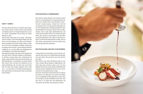 »Gute Zutaten sind das Wichtigste beim Kochen. Dazu ein bisschen Geduld und gute Organisation – dann gelingt jedes Gericht«, erzählt Julia Komp, Betreiberin des Sternerestaurants ‚Sahila‘. »Wer selbst richtig gut essen möchte, muss das Handwerk beherrschen«, ergänzt Marlon Rademacher, Chef des sternegekürten Restaurants ‚La Cuisine Rademacher‘. Komp und Rademacher sind zwei der zwölf Köchinnen und Köche, die für hochwertiges Fine Dining stehen und uns in diesem Kochbuch zeigen, wie man zu Hause raffiniert im Geschmack, aber dennoch unkompliziert kocht. Denn gut kochen ist keine Kunst, sondern gut kochen kann man lernen – auf entspannte Art. Mit viel Liebe zu saisonalen Zutaten verraten die Topköchinnen und -köche ihre besten Vorspeisen, Hauptgerichte und Desserts. So funktioniert echter Genuss mit den Tipps und Tricks der Profis: genial einfach. Von und mit: Jaspreet Dhaliwal-Wilmes, Luis Dias, Thomas Gilles, Marcus Graun, Lena Heene-Würl, Sönke Höltgen, Nikos Katsotakis, Julia Komp, Maximilian Lorenz, Hendrik Olfen, Marlon Rademacher, Paula Wollmann.