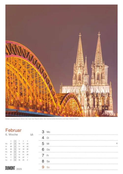 Gehen Sie Woche für Woche auf Entdeckungsreise: Der DUMONT Wochenkalender In Deutschland unterwegs 2026 präsentiert 53 traumhafte Ausflugsziele und Freizeittipps quer durch Deutschland. Von malerischen Landschaften über historische Altstädte bis zu imposanten Bauwerken jeder Kalenderauftritt entführt Sie in ein neues Erlebnis.