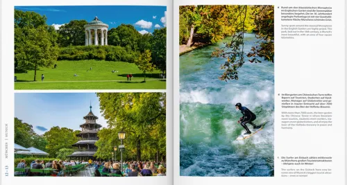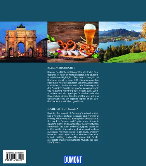 BAYERN IST MIT WEITEM ABSTAND Deutschlands beliebtestes Bundesland für Urlauber, egal ob sie aus Deutschland oder aus dem Ausland kommen. Der handliche Bildband mit kurzen, deutsch-englischen Texten zeigt in rund 160 stimmungsvollen Bildern die herausragendsten Sehenswürdigkeiten und Naturschönheiten zwischen Bamberg und Zugspitze: Städte mit großer Vergangenheit wie Augsburg, Nürnberg oder Regensburg, Landschaften von einzigartiger Schönheit wie die oberbayerischen Seen oder die Bayerischen Alpen und Baudenkmäler wie die Wieskirche oder Schloss Neuschwanstein. Ein eigenes Kapitel ist der Landeshauptstadt München gewidmet. Der Bayern-Besuch bleibt mit diesem Band in allerbester Erinnerung!