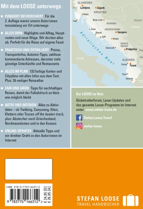 Das Buch startet in Slowenien, dem Tor zum Balkan. Entlang der kroatischen Küste, über Inseln und durch Städte am kroatischen Meer geht es weiter über Bosnien und Herzegovina durch das kleine, aufstrebende Montenegro bis ins spannende Entdeckerland Albanien. Und weil Meer allein nicht alles ist, gibt es für alle Länder natürlich auch Tipps für Touren ins bergige Hinterland.
