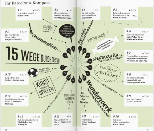 In eigenen Kapiteln erfahren Sie, wo es sich in fremden Betten gut schläft, wo Sie glücklich satt werden, wohin die Barcelonesen zum Stöbern und Entdecken gehen und wohin es sie zieht, wenn die Nacht beginnt.