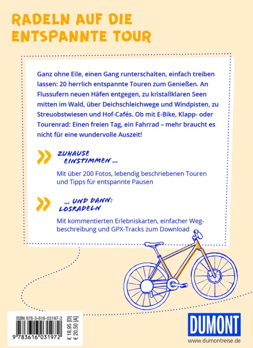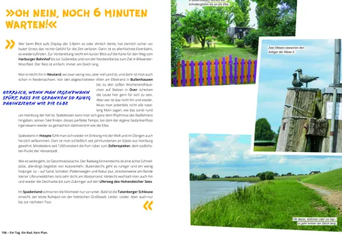 Radeln in und um Hamburg – ganz ohne Eile, einen Gang runterschalten, einfach mal treiben lassen: 20 herrlich entspannte Touren zum Genießen. An Flussufern neuen Häfen entgegen, zu kristallklaren Seen mitten im Wald, über Deichschleichwege und Windpisten, zu Streuobstwiesen und Hof-Cafés. Den Fahrtwind um die Nase spüren und dabei Besonderes am Wegesrand entdecken. Ob mit E-Bike, Klapp- oder Tourenrad: Einen freien Tag und ein Fahrrad – mehr braucht es nicht für eine tolle Radtour in Hamburg.