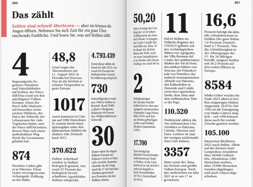 Senkrechtstarter, Überflieger, Kreuz & quer. Vor Ort die Kapitel: Palermo und Monreale. Cefalú und der Norden bis Messina. Catania, Taormina und der Monte Etna. Siracusa und der Südosten. Agrigento, das Zentrum und die Südküste. Marsala und der Westen. Das Kleingedruckte (Reiseinfos von A bis Z). Das Magazin. Offene Fragen.