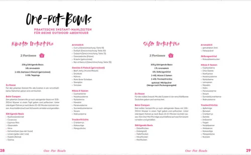 Van-tastig kochen! Zelten, Wandern, Reisen – die Welt steht uns offen, egal ob zu Fuß, mit dem Zelt oder dem Camper. Für alle, die gerne auf eigene Faust und mit wenig Gepäck unterwegs sind, bietet das Outdoor-Kochbuch 60 Rezepte für minimalistisches Kochen in freier Natur. Gerichte wie One-Pot-Pasta, Porridge und Chili-Con-Chocolat können ganz bequem vorbereitet und mit wenig Equipment ganz schnell zubereitet werden. Und falls man mal nicht alle Zutaten vor Ort hat, bietet das Buch noch genügend Abwandlungsmöglichkeiten. Viele praktische Tipps für die Outdoor-Küche von den richtigen Vorräten und der Lagerung bis hin zum idealen Equipment runden das Buch ab. Say yes to new adventures – das Kochbuch für alle Outdoor-Fans mit großem Fernweh!