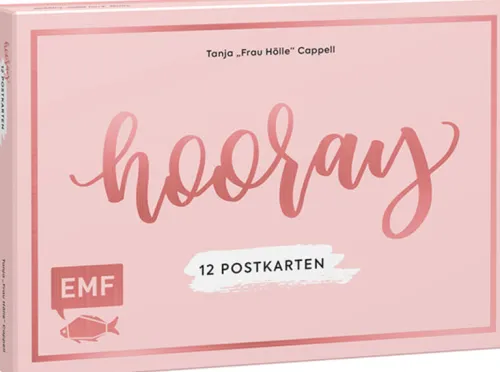 Hooray – Frau Hölle läßt grüßen! Die schönsten Sprüche und Wünsche von Tanja „Frau Hölle“ Cappell gibt es jetzt zum Versenden als wunderschön gestaltete Postkarte! Für Geburtstagsgrüße, Motivationsideen und Einladungen, die von Herzen kommen – oder einfach nur so! Die 6 unterschiedlichen Motive sind jeweils zweifach vorhanden und mit einer Metallic-Folie veredelt. Verpackt sind sie in einer hübschen geschenkigen Box im Frau-Hölle-Design.