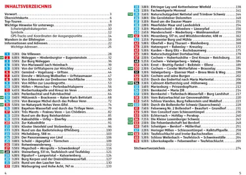 Jede Tour wird mit einer zuverlässigen Wegbeschreibung, einem detaillierten Wanderkärtchen mit eingetragenem Routenverlauf und einem aussagekräftigen Streckenprofil vorgestellt. Eine übersichtliche Toureninfo gibt Hinweise zu Anforderung, Höhenunterschied, Einkehrtipps und vielem mehr. GPS-Daten stehen zum Download bereit.