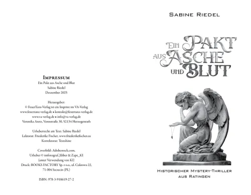Sabine Riedels Ein Pakt aus Asche und Blut ist ein spannungsgeladener historischer Mystery-Thriller, der in ein Geflecht aus Blutmagie, Dämonen und Geheimnissen entführt. Die Grenzen zwischen Wahn und Wirklichkeit verschwimmen, während ein Generationenfluch ans Licht kommt, der tief in Ratingens Vergangenheit verborgen liegt.