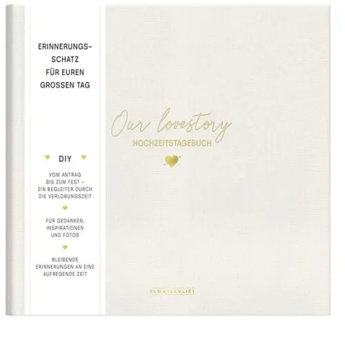 Dieses Tagebuch für Paare von Bestsellerautorin Elma van Vliet bietet viel Platz für Erinnerungen an die gemeinsame Liebesgeschichte: Vom ersten Kennenlernen über den Antrag bis zur Hochzeit.