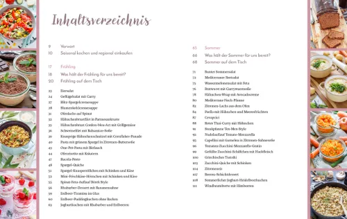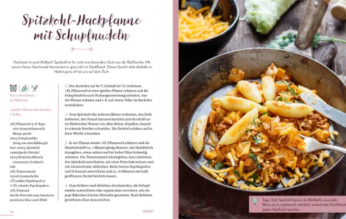 Der umfangreiche Saisonkalender zum Herausnehmen zeigt dir, zu welcher Jahreszeit welches Gemüse oder Obst und welche Salate oder Kräuter frisch aus heimischem Anbau oder als Lagerware erhältlich sind. Dadurch findest du im Kochalltag, egal ob im Frühling, Sommer, Herbst oder Winter, eine passende Rezeptidee, die du ohne viel Aufwand umsetzen kannst.