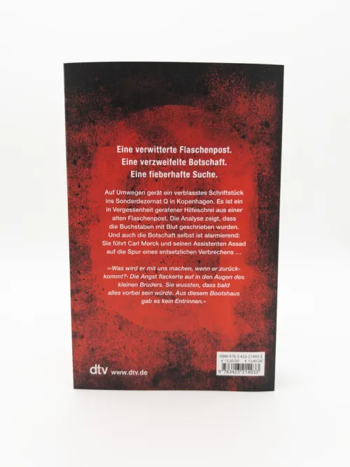 Niemand hatte die verwitterte Flaschenpost beachtet, der Hilfeschrei in ihrem Inneren war ungehört verhallt. Jahre später gelangt das verblasste Schriftstück ins Sonderdezernat Q in Kopenhagen, die dänische Mordkommission für Cold Cases. Die Materialanalyse zeigt, dass die Botschaft mit menschlichem Blut geschrieben wurde. Die Entzifferung der Buchstaben führt Carl Mørck und seinen Assistenten Assad auf die Spur eines entsetzlichen Verbrechens – und in Bereiche der Gesellschaft, die ihnen beiden einigermaßen fremd erscheinen . . .